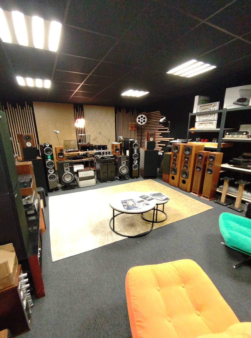 Depuis quelques années maintenant, le magasin à Roanne est aussi spécialisé dans la vente de matériel hifi, vintage et home cinéma. Nous proposons les produits des grandes marques telles que Focal, Advance acoustic, Harman kardon, Project, etc. La réalisation de l’aménagement complet d’une pièce dédiée à un home cinéma est aussi possible selon vos attentes.